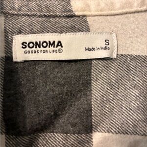 Casual plaid shirt with button-down design. Features classic black and white pattern. Ideal for everyday wear.