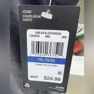 Under Armour Girls Double the Fun Tank YXL NWT Youth Extra Large Black White XL