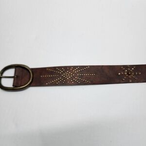 Vintage Saks Fifth Avenue Belt Womens Studded Gemstone Brown Leather Made In USA