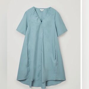 Elegant high low dress by COS. Features a soft light blue color. Short sleeves and relaxed fit. Perfect for casual outings.