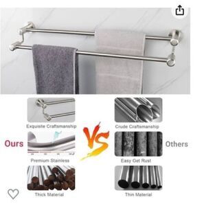 Made from high-quality stainless steel, these double towel bars are designed to add convenience and style to your bathroom. With their sturdy construction and sleek design, they are perfect for holding and drying your towels. Mount them on your bathroom wall without any hassle and enjoy the extra space they provide.