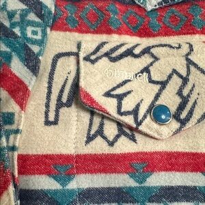 • Tan with blue, turquoise and red Southwestern thunderbird print