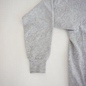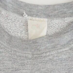 Designed in a traditional crewneck silhouette, this sweatshirt includes ribbed trim at the collar, cuffs, and hem for a clean, balanced finish. The graphic is printed directly onto the fabric, showing the kind of gentle wear and fade expected from a true vintage piece, which adds to its character and authenticity. The overall look leans into casual, relaxed styling that works well for everyday wear.
