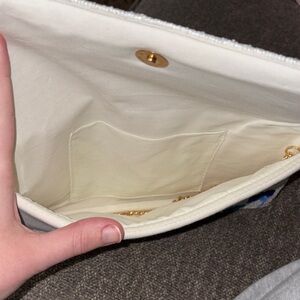 Francesca's Collections Ivory and Blue Beaded Clutch