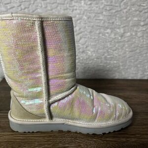 UGG "I Do" Bridal White Sequins Sparkle Boot Size 7 Disco whimsical Fairy Soft