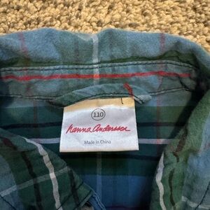 Hanna Andersson Blue and Green Plaid Button Down Shirt 5T