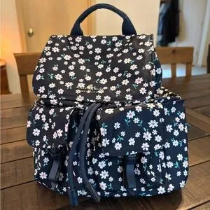This Kate Spade Navy Blue Floral Print Backpack/Bag is in like new condition. It is soft and big enough to hold all of your essentials, but not so big to feel heavy or overwhelm. Wear with one strap for more of a tote feel, or with both straps for the full backpack vibe. Perfect for this Spring weather on its way!๐