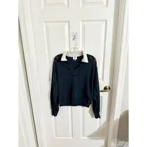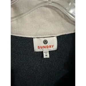 Sundry Vintage Terry Popover Polo Sweatshirt Blue Stars Size Medium