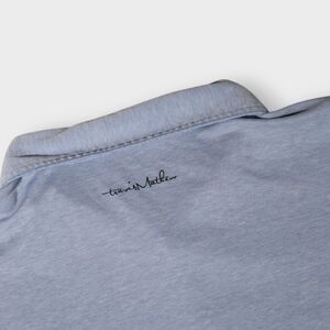 This Travis Mathews Golf Polo Shirt in men's size XXXL is a stylish and comfortable choice for any casual or activewear occasion. The light blue color and collared neckline with button closure add a touch of sophistication, while the short sleeves and lightweight fabric make it perfect for warmer seasons. The cotton blend material ensures a comfortable fit, and the addition of a pocket and logo detail add practicality and style to this high-quality polo shirt from a reputable brand. Perfect for a round of golf or a casual day out, this polo shirt is a versatile and fashionable addition to any man's wardrobe.