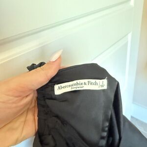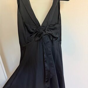 Satin black slip dress, ideal for intimate or sleepwear. Adjustable tie detail on back.