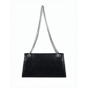 A refined shoulder bag by Tory Burch, expertly crafted from smooth lambskin leather. This piece features a flap closure adorned with a subtle metallic logo emblem and a double silver-tone chain strap, enhancing its sophisticated allure. Perfect for the modern woman, this bag effortlessly transitions from day to night, embodying a stylish statement.
