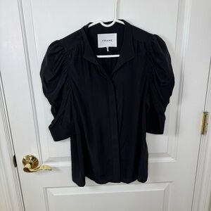 Frame Gillian Puffed-Shoulder Silk-Crepe Top