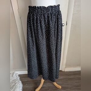Leave me out of this. This plus size skirt features a high-waisted, midi silhouette, elasticized, paperbag waist, and polka dot print.