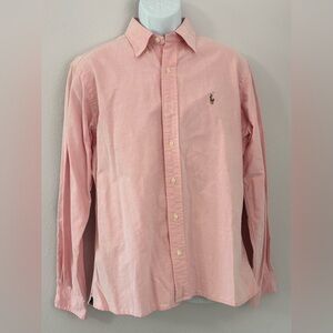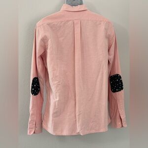 RALPH LAUREN Pink Button Down Cotton Shirt Navy Elbow Patches (w/Stars) Size M