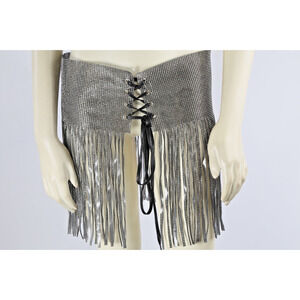 Sparkly High Waist Rhinestone Fringe Mini Skirt Party Festival Size S