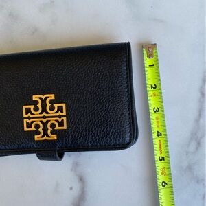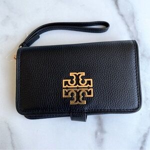 TORY BURCH Black & Gold Miller Logo Britten Phone Snap Wristlet Wallet