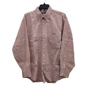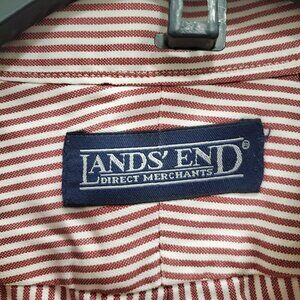 Lands' End Men's Burgundy White Stripe Monogram MJW LS Button Up Sz 17.5 - 35