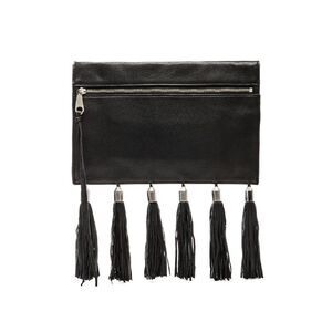 REBECCA MINKOFF Kinga Leather Tassel Clutch Black