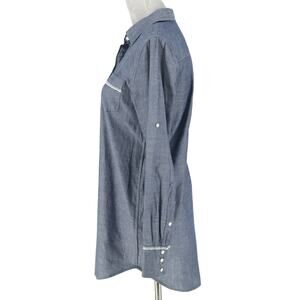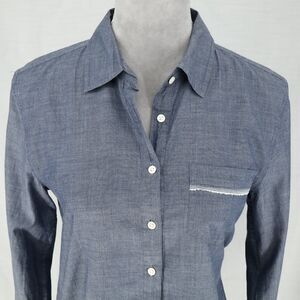 J Crew Top Women's XS Blue Cotton Lightweight Henley Blouse Pullover Pocket