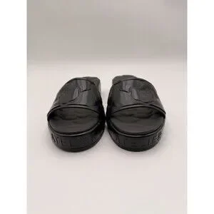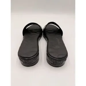 The Valentino Garavani Atelier 03 Rose Edition rubber platform slide sandals in size 40 are a stylish and comfortable choice for women. Featuring a floral rose pattern, low block heel, and slip-on style, these black sandals are perfect for adding a touch of elegance to any outfit. Made with durable rubber material and showcasing the signature Valentino logo accents, these sandals are a must-have addition to any fashion-forward wardrobe.