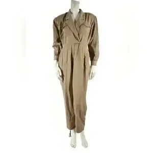 1980s BERGDORF GOODMAN Beige Tan Wool Mechanic Jumpsuit 12US USA