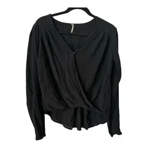 FREE PEOPLE CHECK ON IT BLACK WRAP TOP SIZE XS