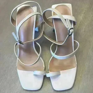 New with out tags. Size 5. Pretty Little Things block heel. Featuring a white material with ankle straps, toe loop detail and a comfortable mid-heel. 3 1/2” heel.