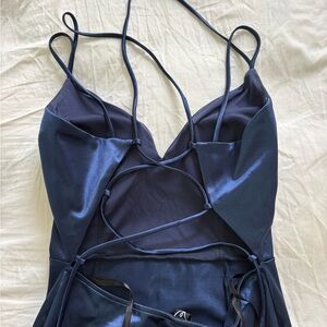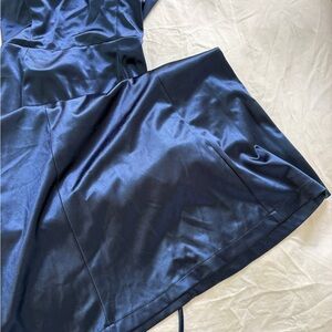 Chic backless design with a deep V-neck. Luxurious satin fabric. Perfect for evening events. Long dress perfect for prom!