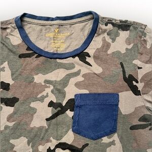 Men’s American Eagle Outfitters Camouflage Tee with Blue Trim Size M