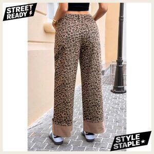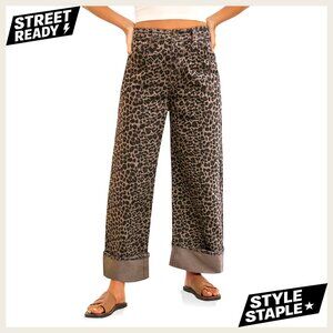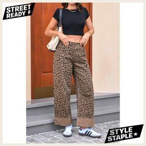 - Features a baggy boyfriend fit with a wide leg silhouette and high waist