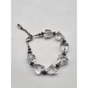 Chunky Asymmetrical Clear Quartz? Bracelet Sterling Silver 925 Heart Clasp