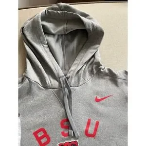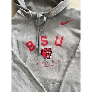 NIKE Dri-Fit BSU Bears Hoodie S Gray Red Fleece Graphic Athletic Gym Warm Sports