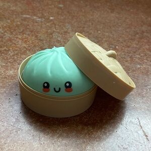 Adorable dumpling action figure with a charming smile. Perfect for imaginative play and display. Features a delightful mint green color.