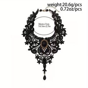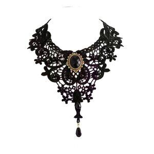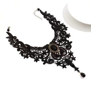Choker Collar Necklace Black Lace Beads Cameo Rave Scene Vamp Sexy Goth Trendy