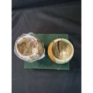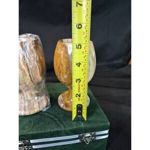 Marble Onyx Stone Goble Wine Glass Goblet Cup Set Velvet Case *VINTAGE*