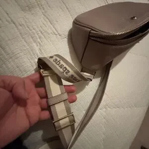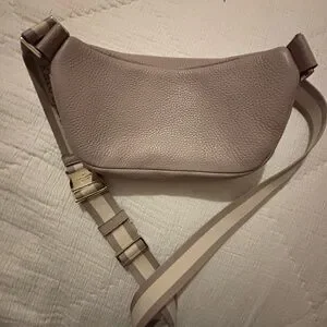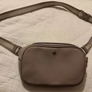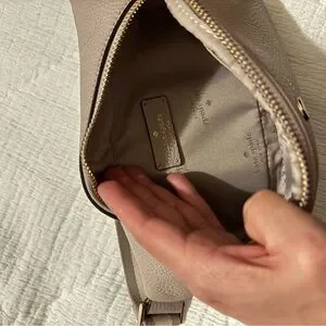 Chic kate spade crossbody belt bag in light gray beige. Perfect for everyday wear. Sleek and modern design. Used one time for a trip, perfect for travel