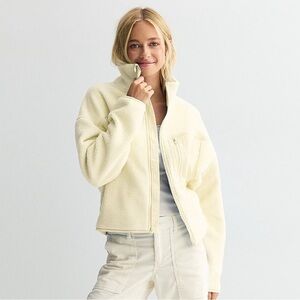 Stay cozy and stylish with this cream fleece jacket. Perfect for layering in cooler weather.