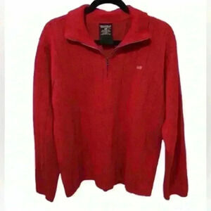 Men’s Vintage Polo Ralph Lauren Red Half Zip Mock Neck Flag Logo Sweater- Medium
