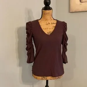 NWT Nation Ltd. Evereve Deep Purple Ruched Sleeve Top Women Size M