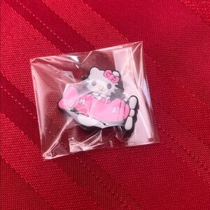Cute Hello Kitty pin with a pink design. Perfect for accessories or gifts.