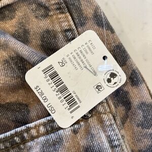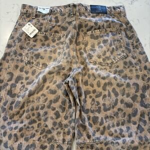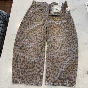 Chic barrel cut jeans with a striking animal pattern. Ideal for a fashionable outfit.