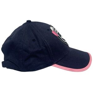 Description: 6 Panel Cap, Navy Blue w/ Pink Piping on Brim, FCGB Center Patch, Pink Embroidered Puma Logo on Left Side, Adjustable Cap, Pre-Curved Visor