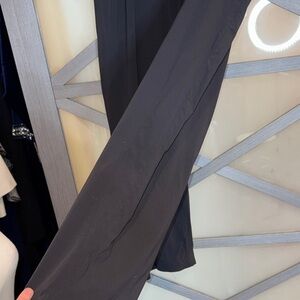 Sleek black athletic pants with a straight leg design. Features a drawstring waist for comfort. Ideal for versatile styling. Advanced water repellent