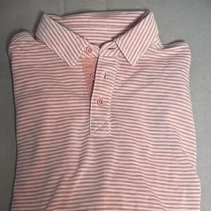 JOHNSTON & MURPHY Orange & White Striped Vintage Slub Polo Shirt Size Large