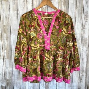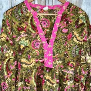 Ivy Jane Green & Pink Kantha Stitch Peplum Top