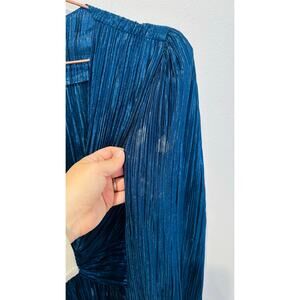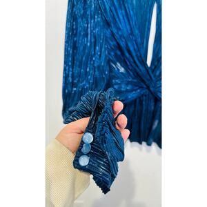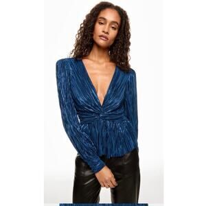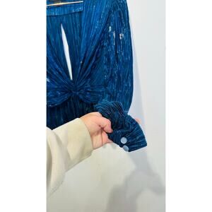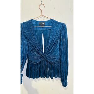 SABINA MUSAYEV Blue Metallic V-Neck Back Button Long Sleeve Ifat Top sz Large