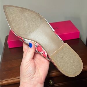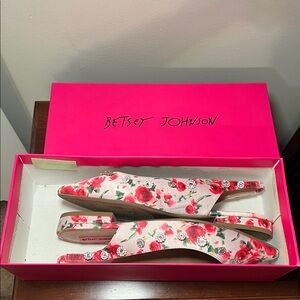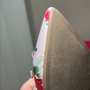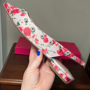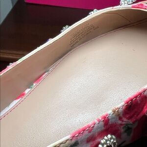 Betsey Johnson Pink Floral Satin Sparkly Gem Accents Pointy Toe Flats Shoes