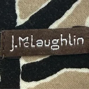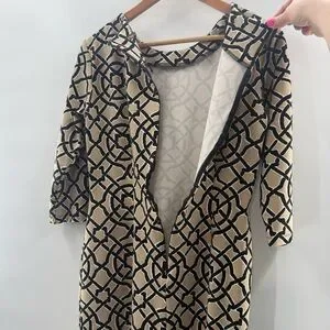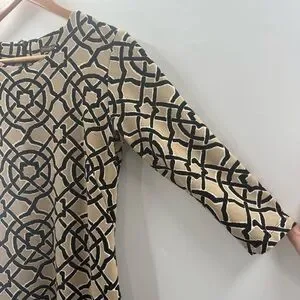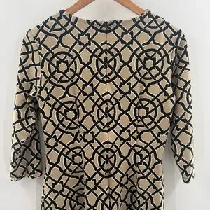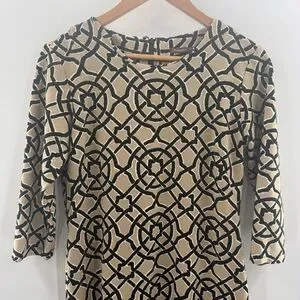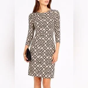 J. McLaughlin Devon Ponte Scribe Print Knit Sheath Dress Black Tan Size Small