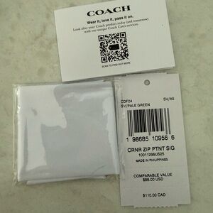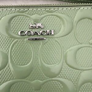 Stylish Coach wristlet. Embossed design. Secure zip closure. Convenient wrist strap.