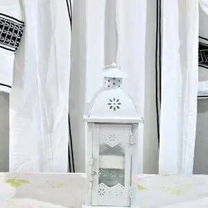 White Open Jellabiya with Gold Trim – Elegant Modest Wear Plus Lantern